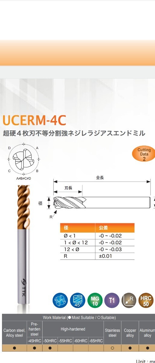- 300☆超硬エンドミルUCERM4030AC-05AC切削工具 TTK台湾製