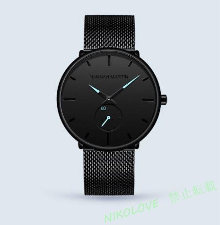 - 新品 シンプル カジュアルファッションユニセックス 軽量 メッシュバンド アナログクオーツ 時計腕時計 メンズ薄型 ブラック LA877