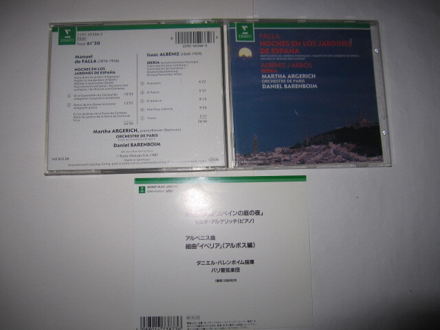 - ファリャ:スペインの庭の夜/アルベニス:組曲「イベリア」(アルボス編) アルゲリッチ,バレンボイム,パリ管弦楽団 ERATO
