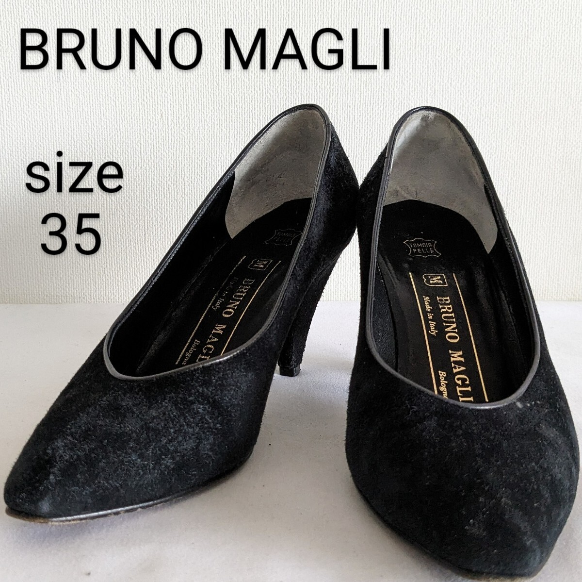 - BRUNO MAGLI ブルーノマリ ヒール パンプス スエード パッチワーク ブラック 日本22程度 レディース 婦人靴 黒 お洒落なシューズ
