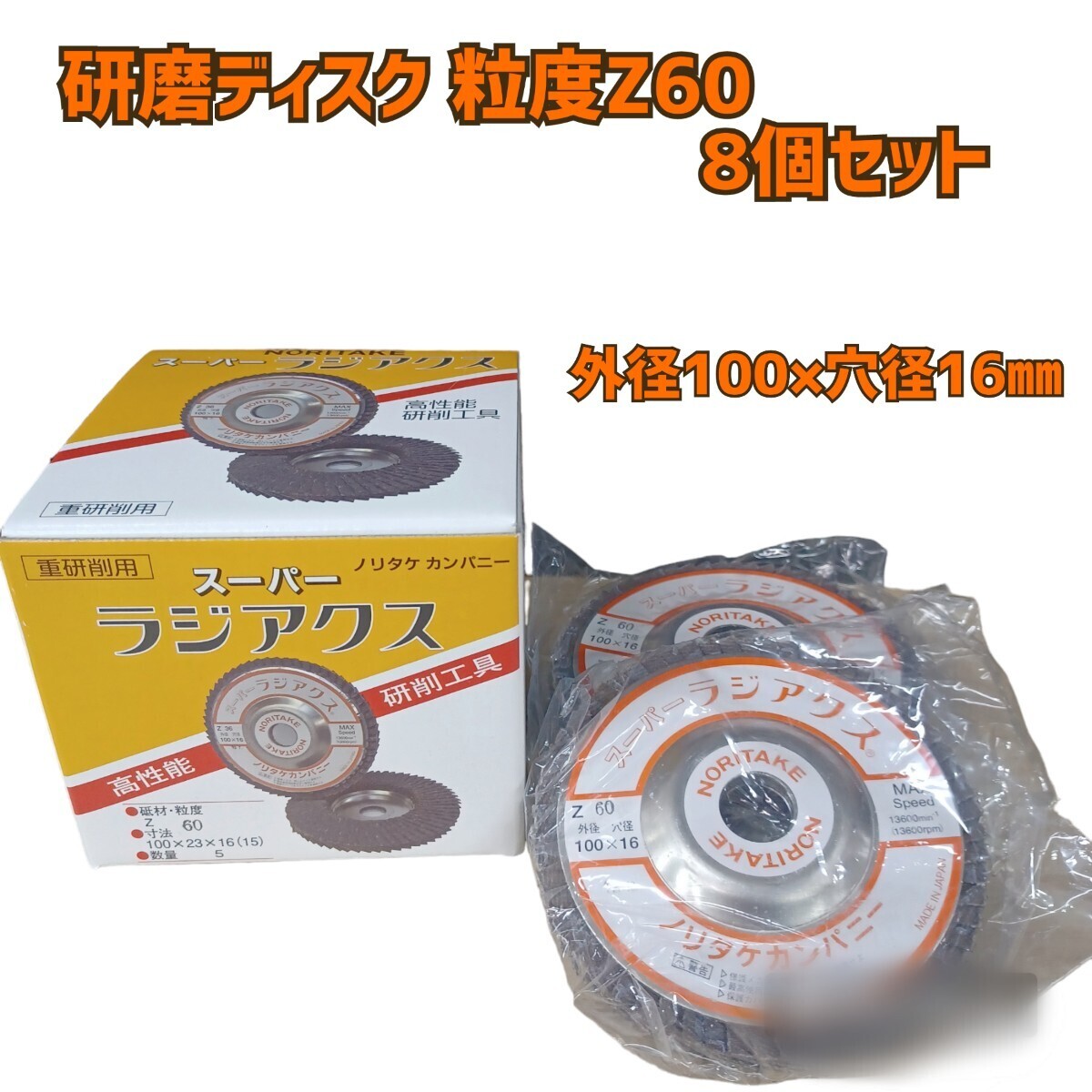 - 石) 研磨ディスク 8枚セット100×16 粒度 Z60 NORITAKE スーパーラジアクス マルチディスク グラインダー 重研削用 研磨材 240405(E2-3