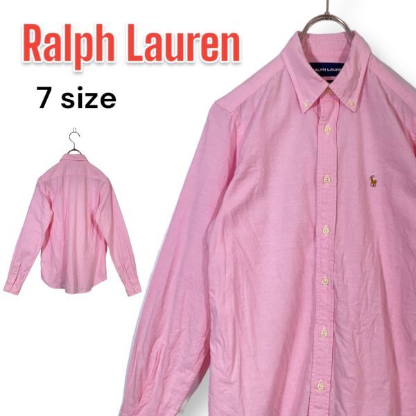 > 【定番】カラーポニー刺繍 コットン Ralph Lauren 長袖シャツ レディース 7号 ピンク 古着 USED 長袖 ラルフローレン