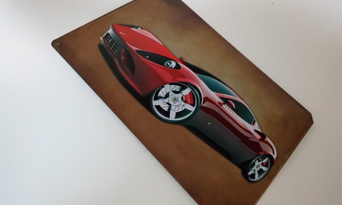 - フェラーリ アンティーク風 ブリキ看板 右上端っこ折れあり