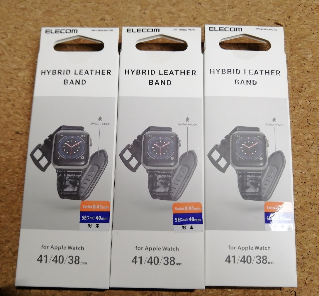 > 【3本】エレコム Apple Watch ハイブリッド ソフトレザー バンド アップルウォッチ 41 40 38 mm ブラック AW-41BDLHVCRB 4549550269872
