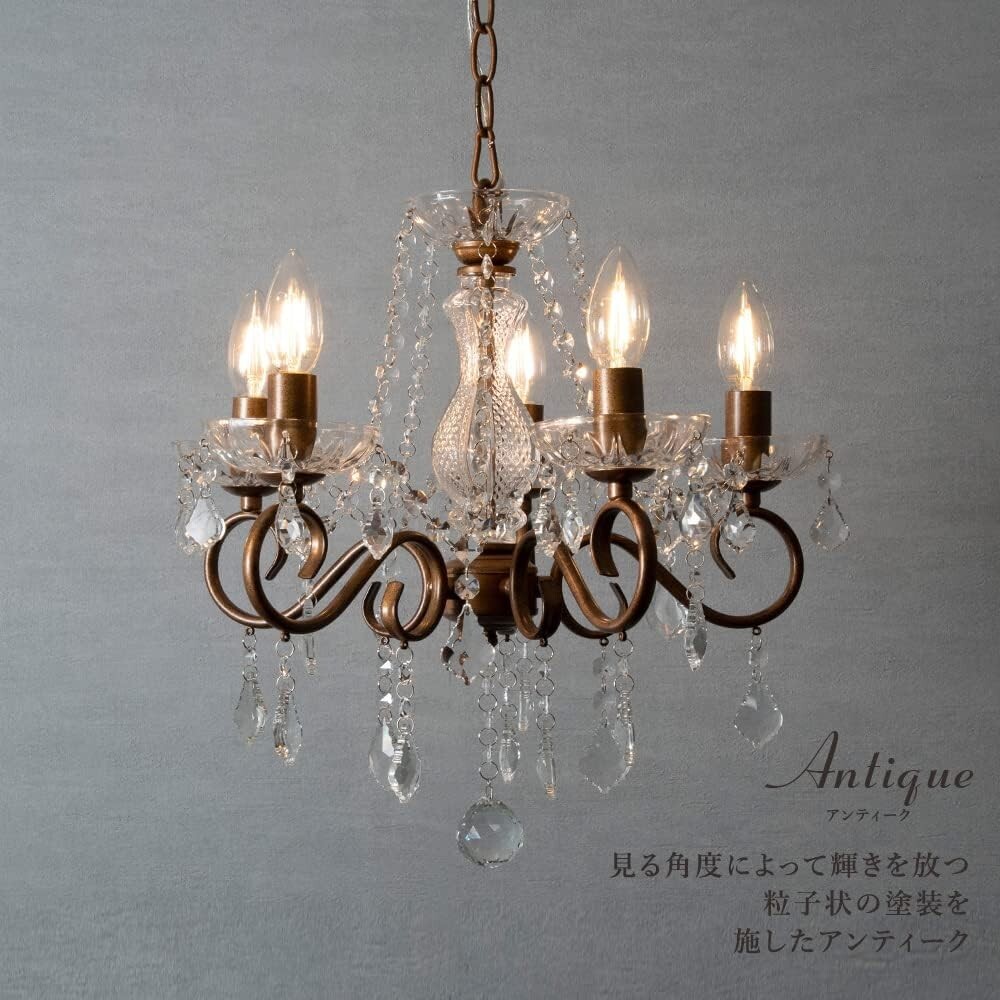 - Vill-age シャンデリア 照明器具 5灯 クリスタルガラス 4畳 6.5畳 アンリ アンティーク LED対応【白熱電球付属、アンティーク】