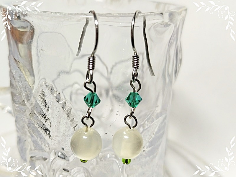 - 091:キャッツアイとスワロフスキーのフックピアス(ライトエメラルド)