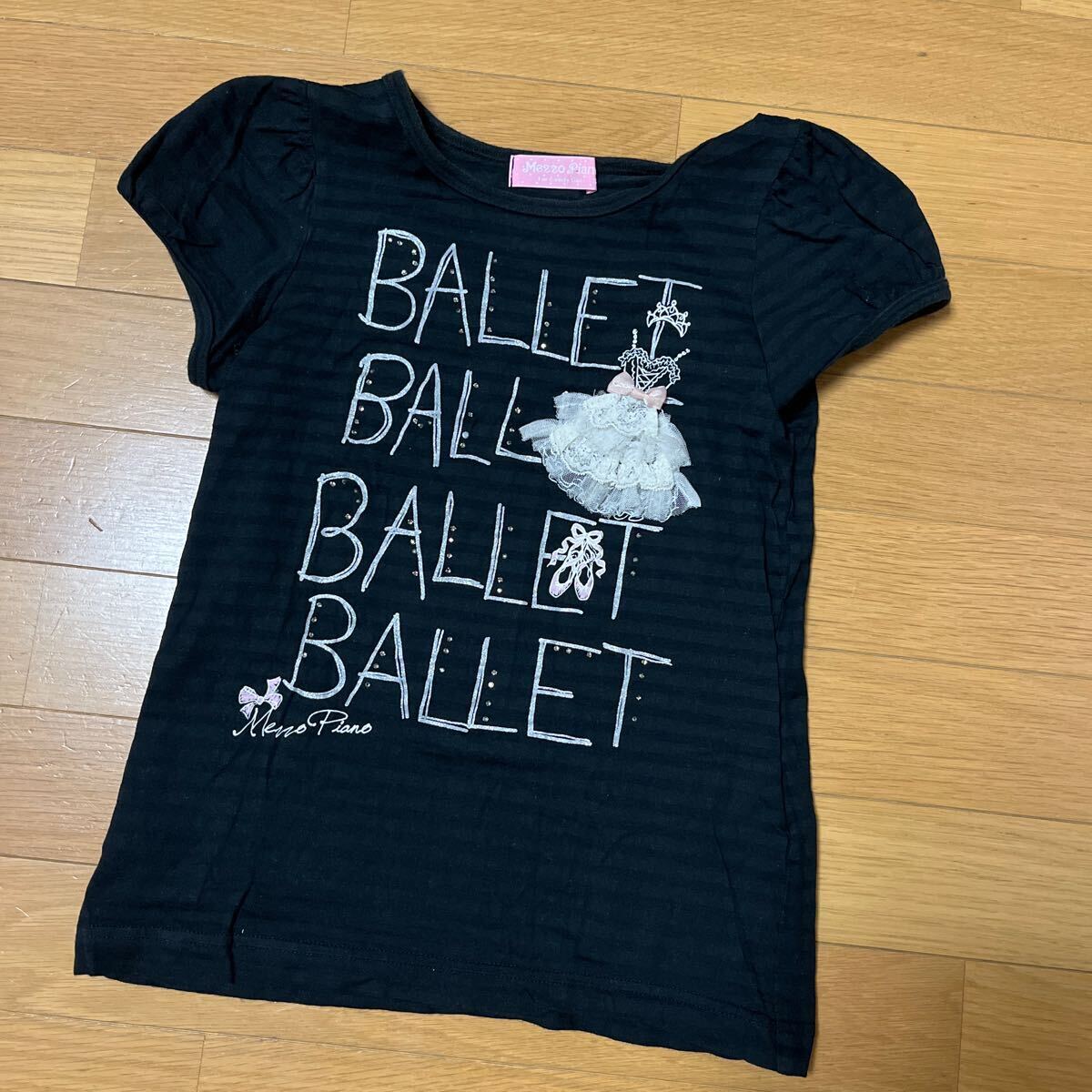 > 140☆mezzo piano メゾピアノ ☆ バレリーナ柄 パフスリーブ 黒 半袖 薄手 S