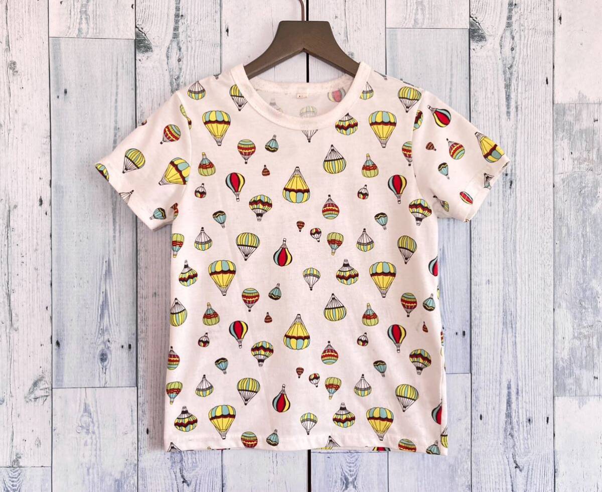 - 西松屋 半袖 Tシャツ トップス 気球 総柄 キッズ 140