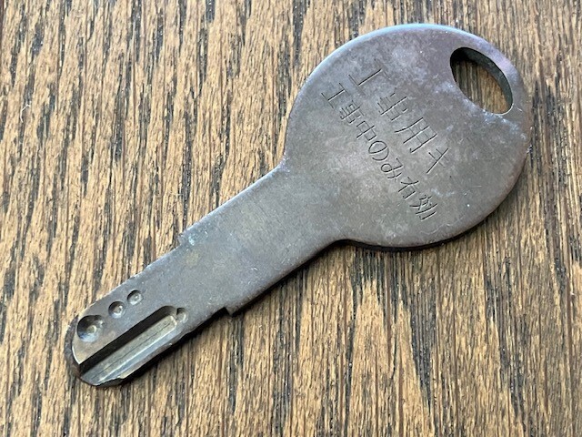 > 工事用キー 工事中のみ有効 コンストラクションキー 金属製 キーホルダー 全長5.8cm 幅2.5cm 重15g 昭和 当時物 送料無料 底値