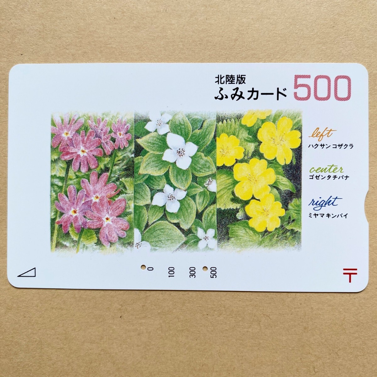 - 【使用済】 花ふみカード 北陸版 ハクサンコザクラ ゴゼンタチバナ ミヤマキンパイ