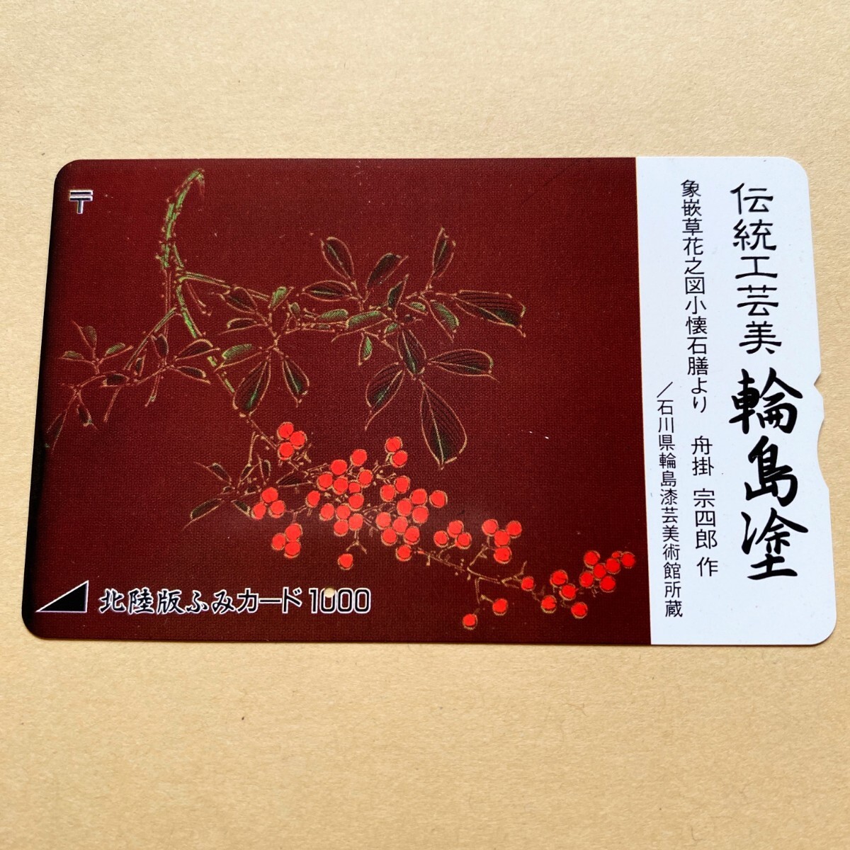 - 【使用済】 ふみカード 北陸版 伝統工芸美 輪島塗 象嵌草花之図小懐石膳より 舟掛宗四郎