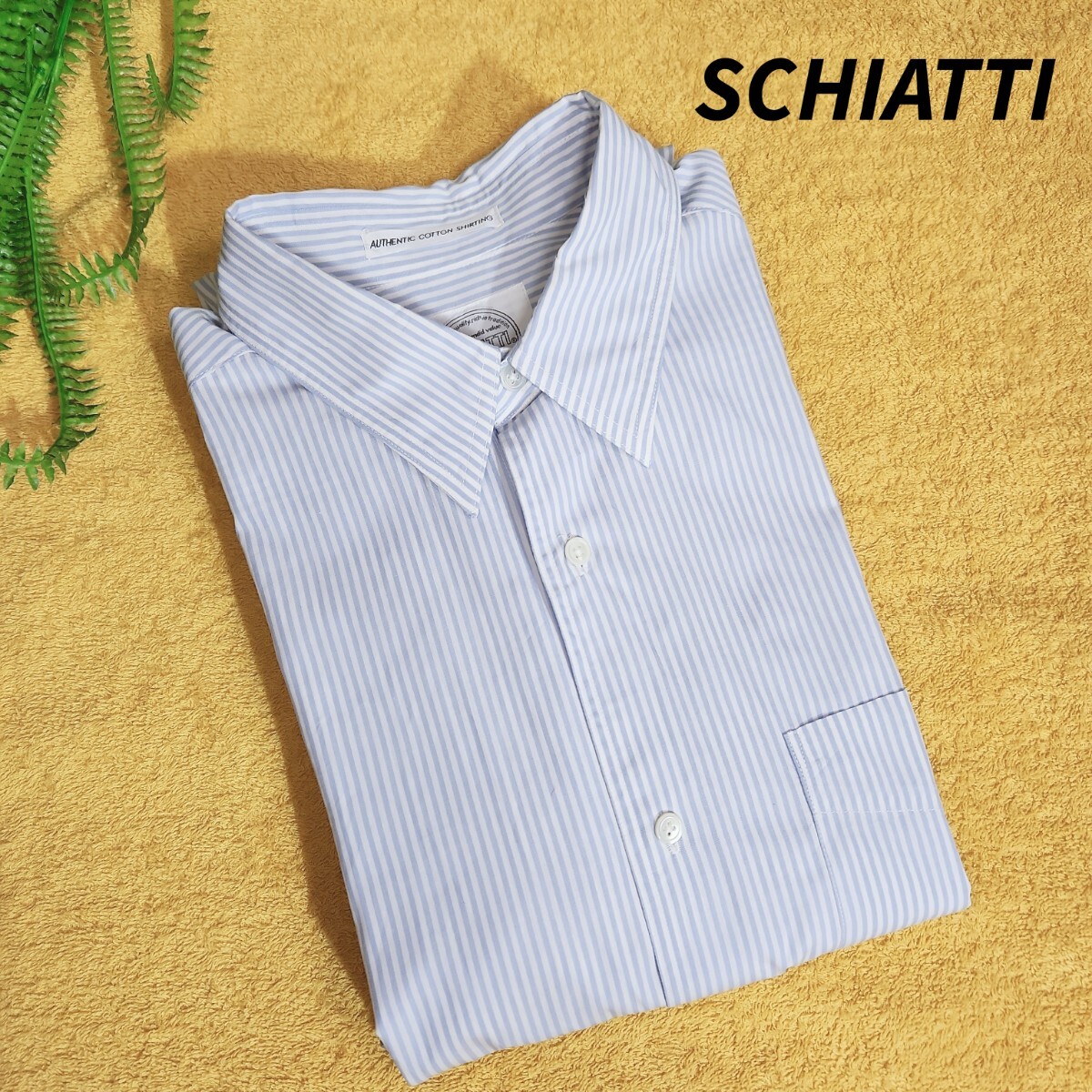 - SCHIATTI ストライプ長袖ブロードシャツ Lくらい ライトブルー&白 ワイシャツ 83180
