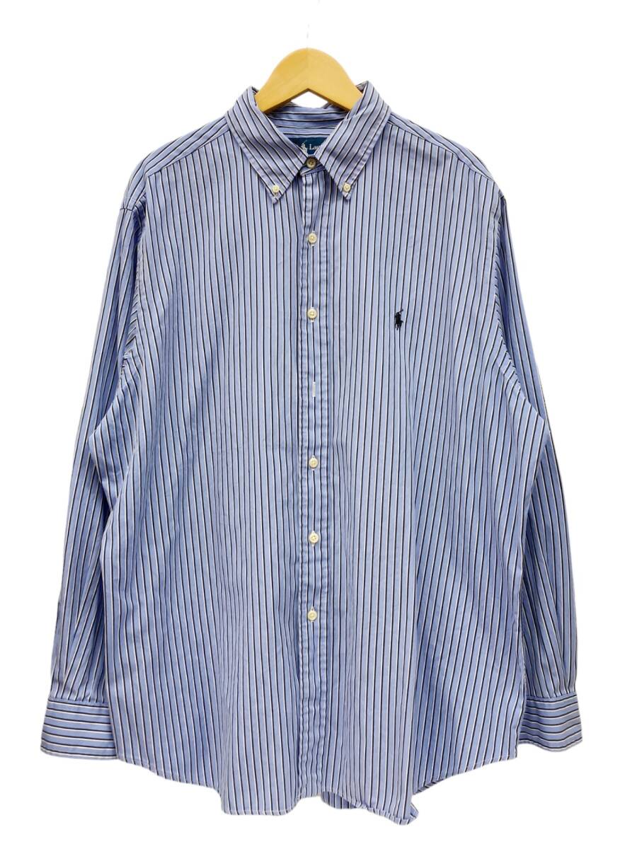 - RALPH LAUREN (ラルフローレン) ストライプ 長袖 シャツ ボタンダウン 胸ロゴ 刺 コットン 41381 17 34/35 ブルー×ブラック メンズ/028