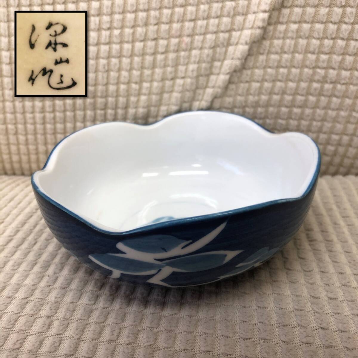 - [食器] 銘有「深山作:青地 小鉢」 高さ:約3.4cm 口直径:約11.5cm 擦れや汚れあり 和食器