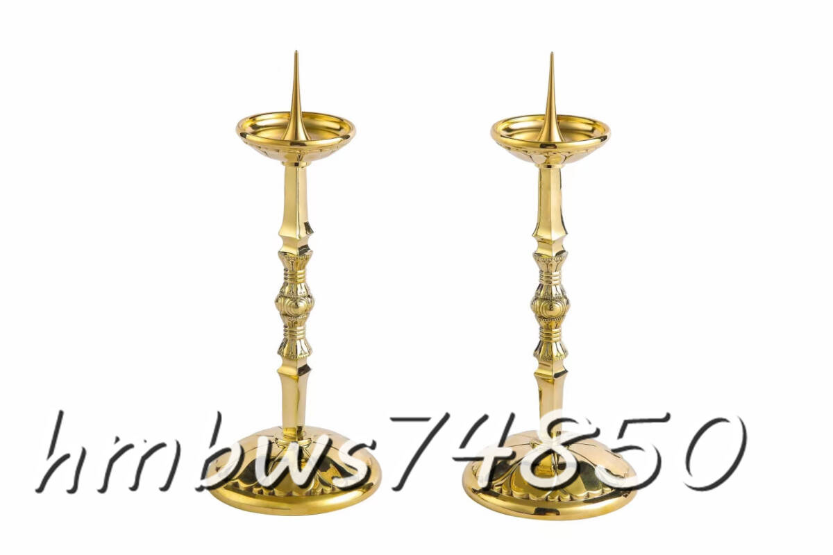 - 「密教法具 寺院仏具」極上品 大々型 両用 燭台 一対 仏具 真鍮製 磨き仕上げ 工芸品 高さ25.5cm