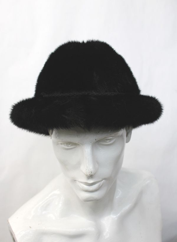 - カスタムメイド メンズ ブラック・ミンク毛皮ファー・ハット 帽子 フェドラスタイル