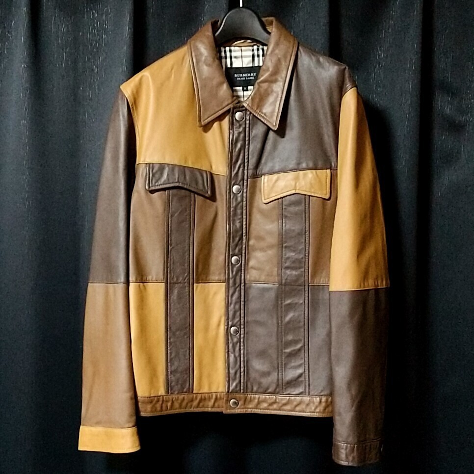 - 銀座店限定 BURBERRY BLACK LABEL バーバリーブラックレーベル M レザージャケット クレイジーパターン パッチワーク ブラウン ライダース