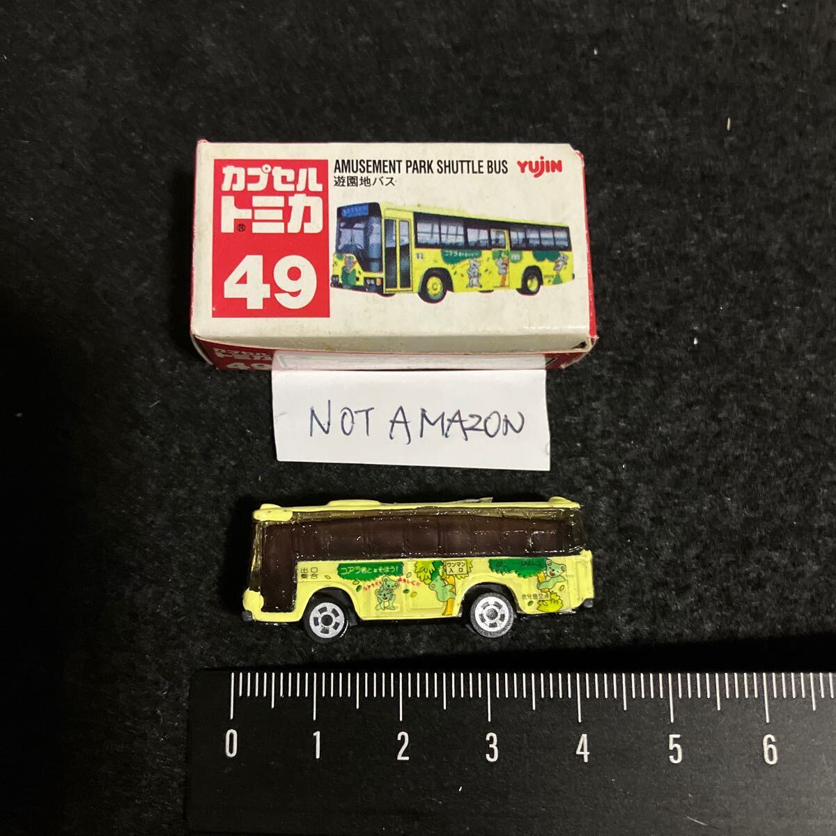 - レトロ yujin カプセルトミカ 遊園地バス 未使用ですが経年による多少のベタつきあり、箱接着剥がれ、凹み トミカ 49