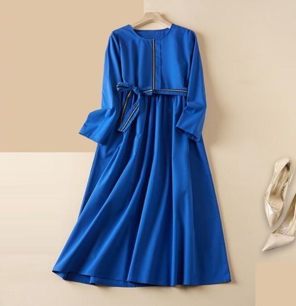 - LC182 春 ゆったり 体型カバー 綿麻風 長袖 マキシ丈ワンピース きれいめ 大きいサイズ ロングワンピース Mサイズ