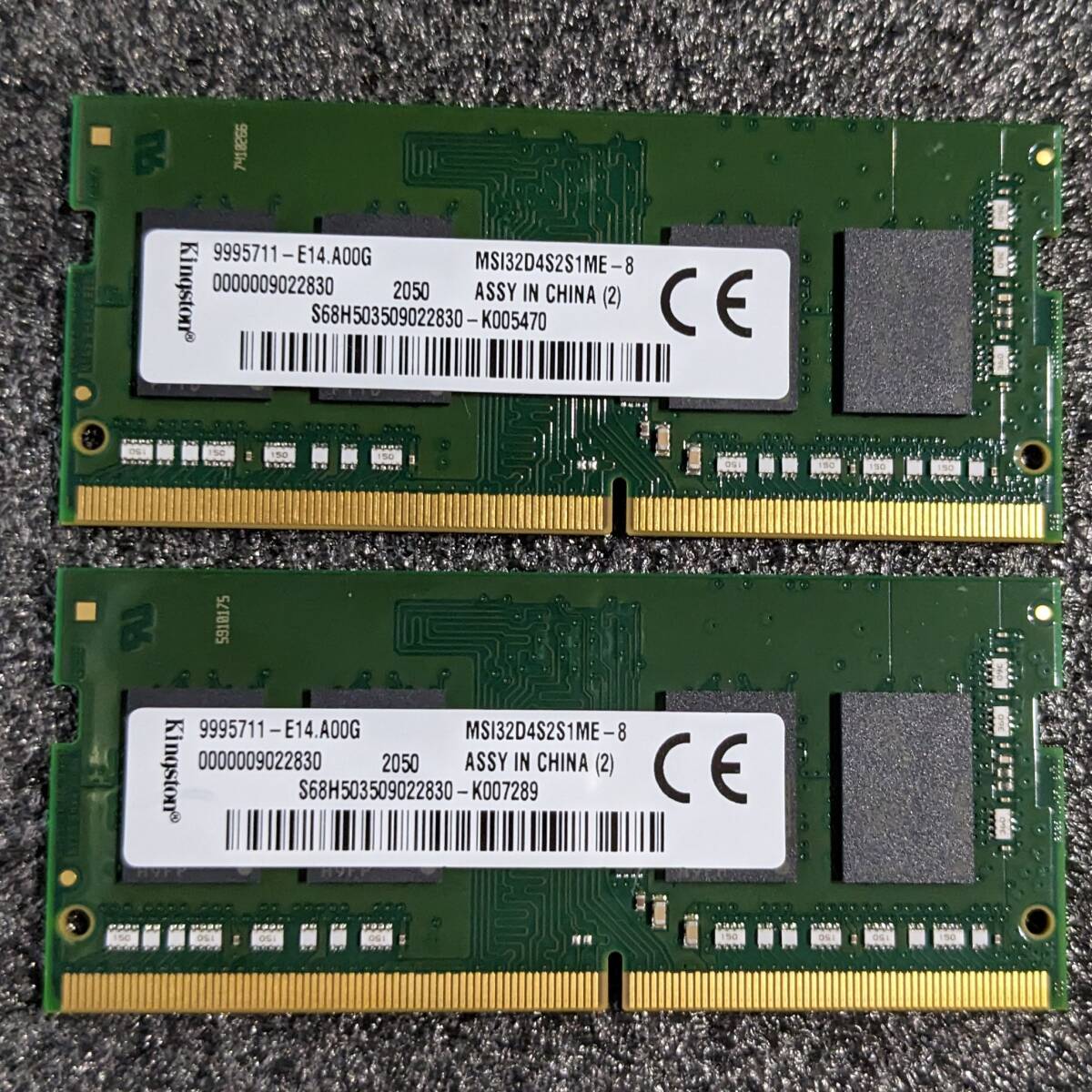- 【中古】DDR4 SODIMM 16GB(8GB2枚組) Kingston MSI32D4S2S1ME-8 [DDR4-3200 PC4-25600]