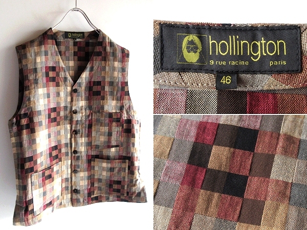 - 新品 フランス製 Hollington ホリントン コットンリネン マルチジャガード モザイク柄 ブロックチェック ベスト ジレ 46 国内正規品