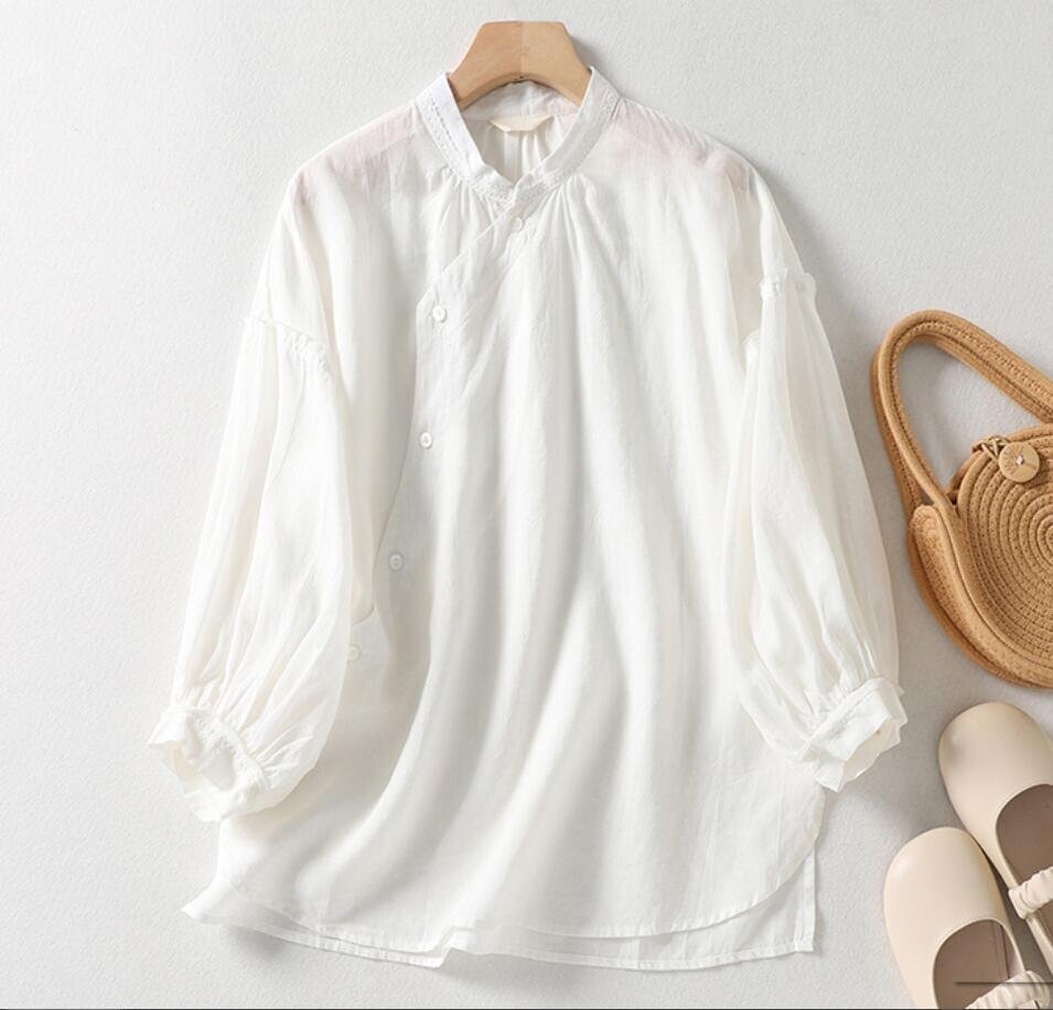 - カジュアル チュニック コットン ブラウス シャツ 大きいサイズ ゆったり トップス 不規則 きれいめ MK0269