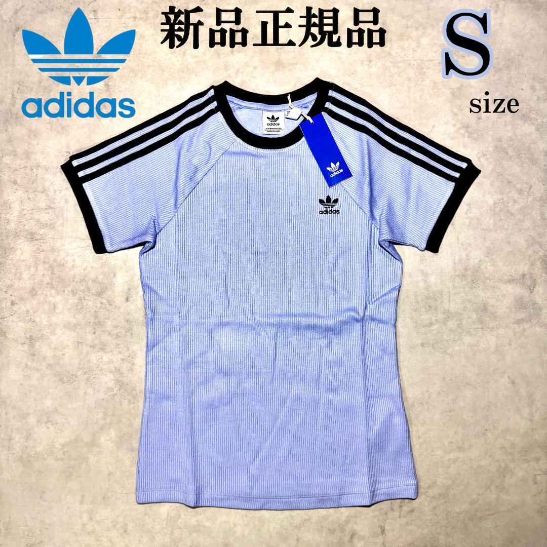 > 新品 Ssize アディダスオリジナルス 半袖 ワッフル Tシャツ 水色 adidas originals 韓国 K-POP トレンド 刺繍 ストライプ 夏 タイト