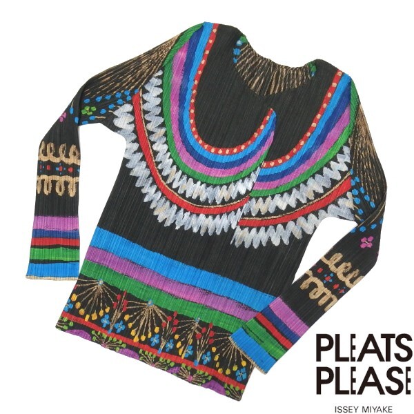 > 美品★PLEATS PLEASE ISSEY MIYAKE プリーツ 総柄 長袖 カーディガン カットソー プリーツプリーズ イッセイミヤケ サイズ3★