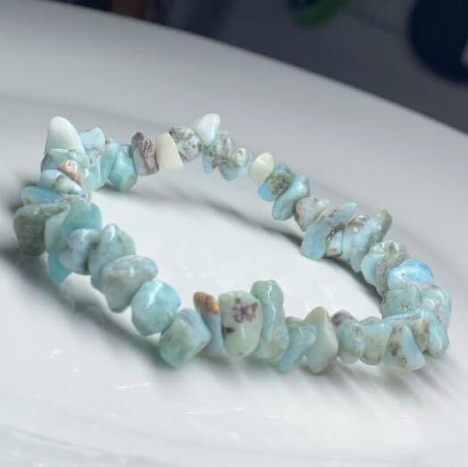 - おすすめ!!天然石★チョコ ラリマー 細石 ブレスレット★① 18cm