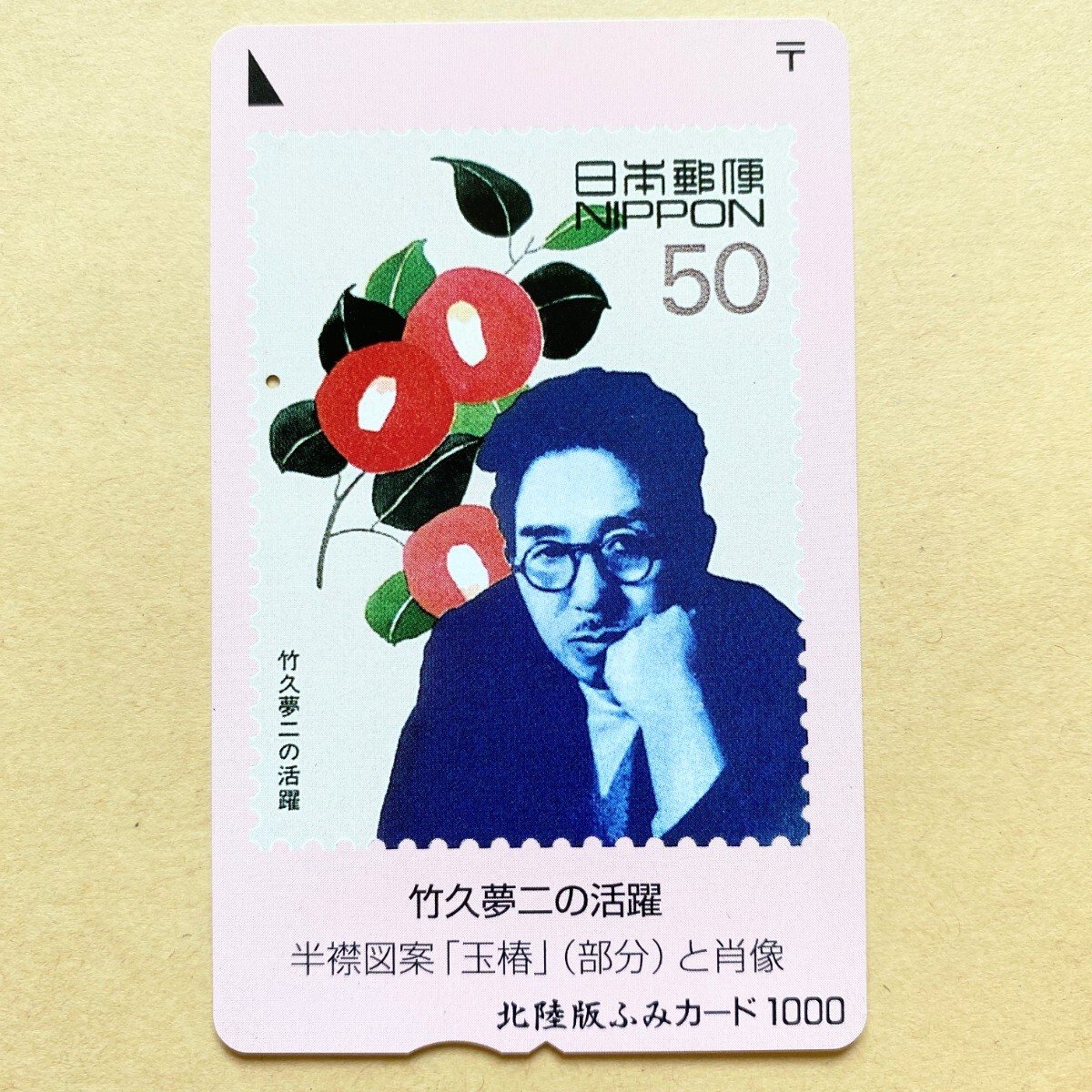 - 【使用済】 ふみカード 北陸版 竹久夢二の活躍 半襟図案「玉椿」(部分)と肖像