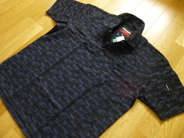 - ラスト1着★HUMMER 半袖ポロシャツ★迷彩 ネイビー/半袖Tシャツ/3L/迷彩ポロシャツ/鹿の子生地