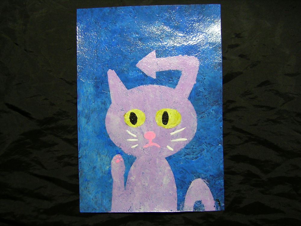 - 猫、ねこ、ポップ、シュール、絵画、絵、アート、Art、芸術、藝術、肉筆、インテリア、特殊加工、真作、水雲彩鶴 ※額縁に入れて発送します