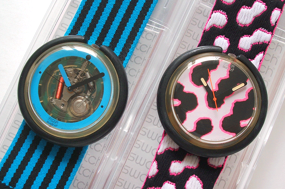> 超入手困難未使用品★ビンデージ POP SWATCH★1988年販売 Abraxas★1989年販売 Blue Zebra★電池交換済み★経年変色あり★コレクション用