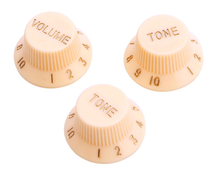 > ストラトキャスター 【ベージュ金文字】3点セット エレキギター・ベース用 ボリューム トーン コントロールボタン