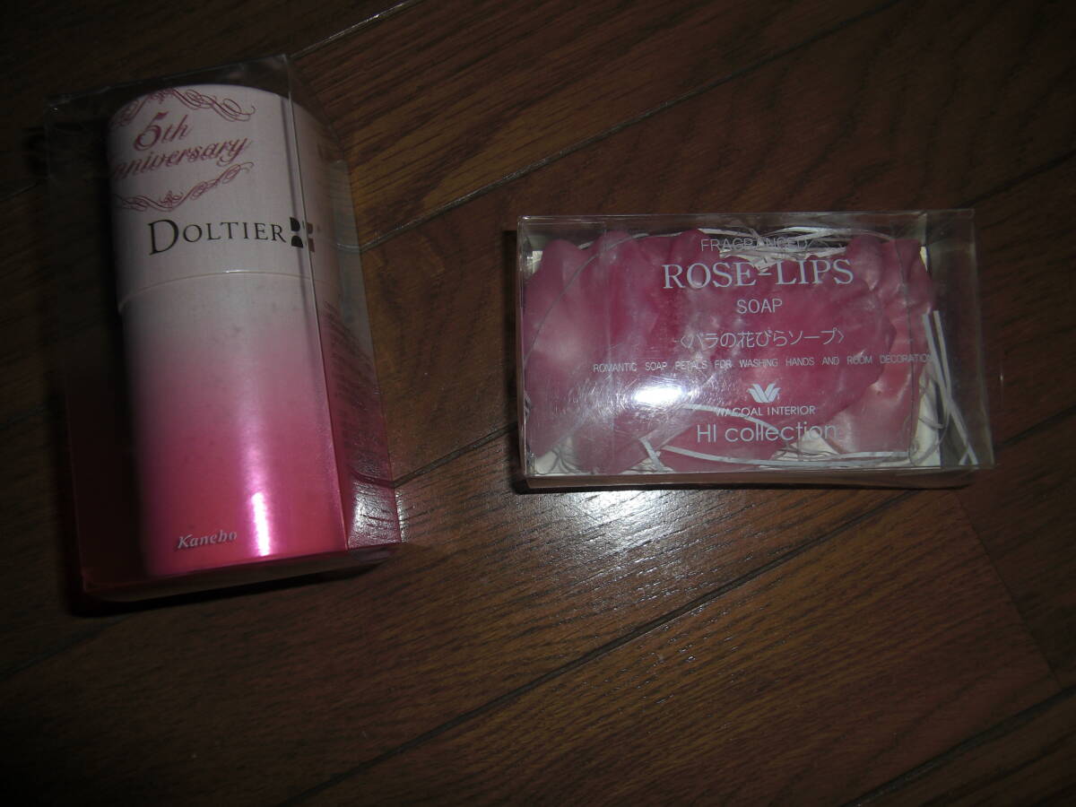 - カネボウ ドルティア フレグランスボディパウダー&ワコール バラの花びらソープ