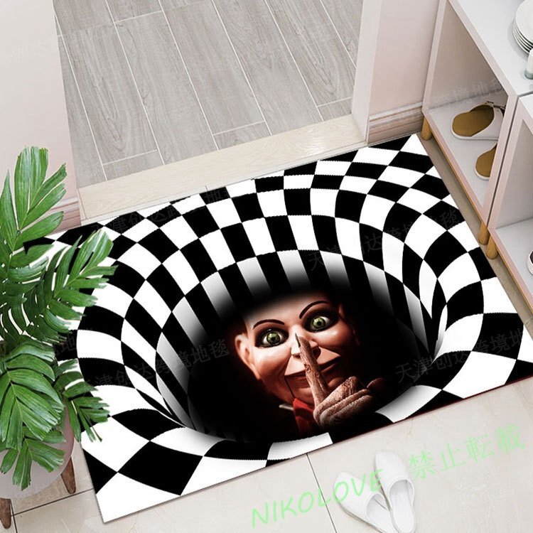 > LD366☆トリックアート マット 3D ボルテックス ブラックホール ラグ 玄関 マット インテリア フロアマット リビング 80*120cm A07
