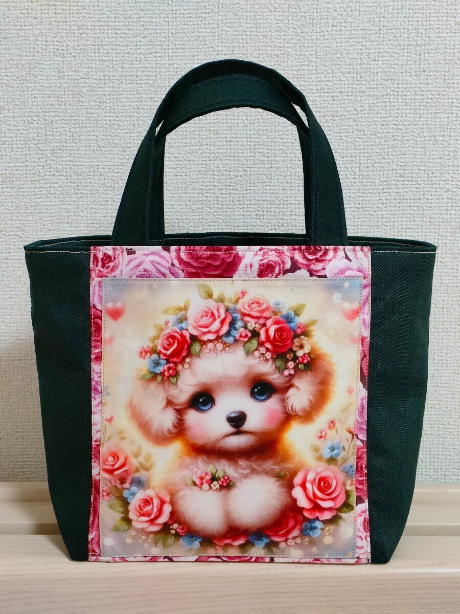 - 【手作り】 ミニトート1325 ミニバッグ お散歩バッグ お弁当バッグ ランチバッグ おしゃれ フラワー バラ 犬 サブバッグ ①