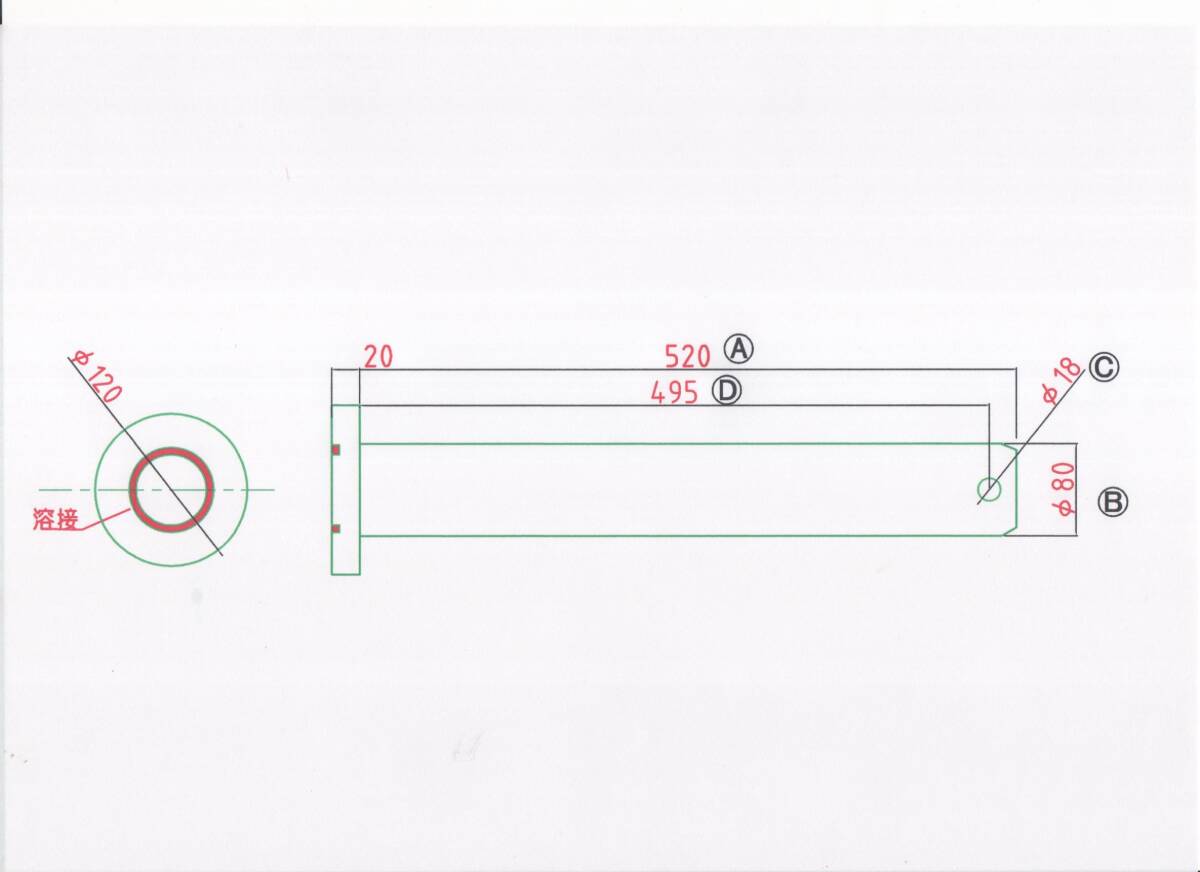 - NO1782 Φ80用 溶接ツバ下520mm バケットピン 重機 パワーショベル 1本