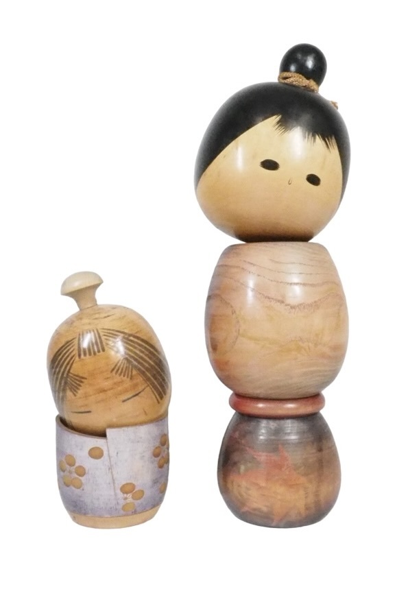 - 昭和期ビンテージ 伝統工芸 創作こけし二体セット 在銘品 落款印有 内閣総理大臣受賞作家 佐藤翠崕 佐藤香村 1970〜1980年代 SHI605