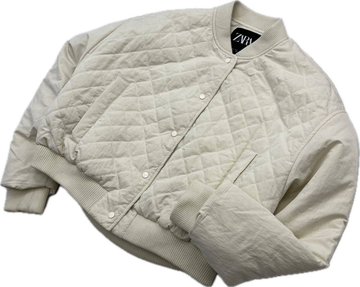 - ZARA ☆ 中綿 ジャケット ブルゾン オフホワイト ワイドシルエット レディース S モード ストリート カジュアル 古着 人気 ザラ■BF270