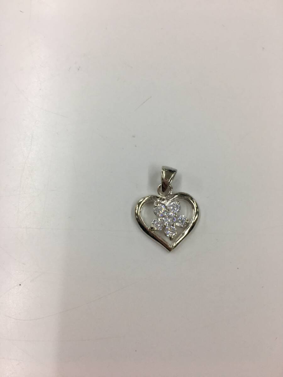 - 【2004】シルバーアクセサリー ペンダントトップ 925 ハート 中央に花 2.2g 327 *【500101000208】