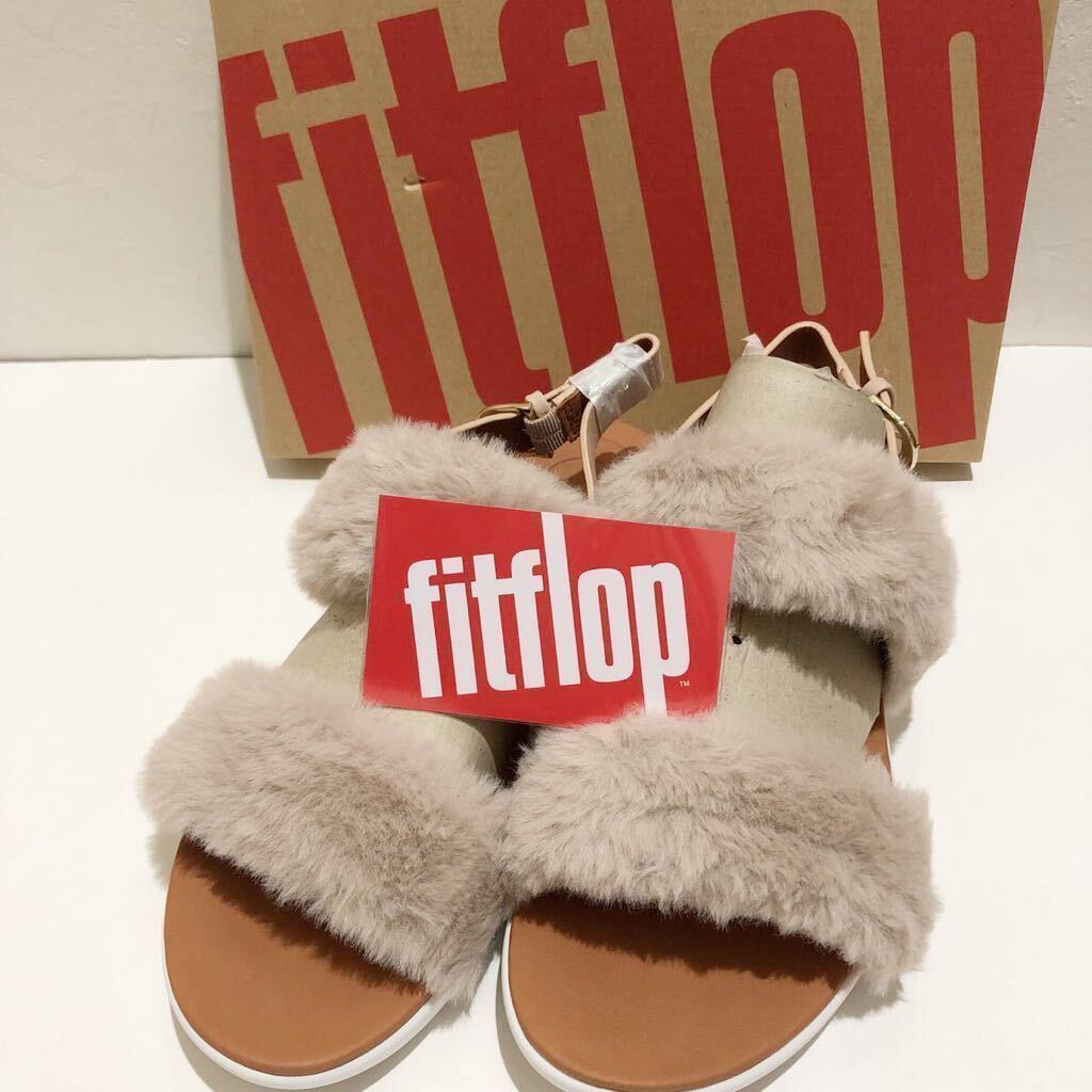 - 新品*US6.5/23.5【fitflop fauxファーサンダル】フィットフロップ■秋冬レディースサンダル/19800円/ Taupe ベージュ 系/女性用サンダル