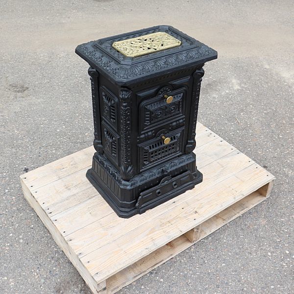- 【新潟発】暖炉 薪ストーブ 全長約42cm×全幅約31cm×全高約62cm レトロ アンティーク フランクリンストーブ 焚火 ストーブ 中古 配送 引取
