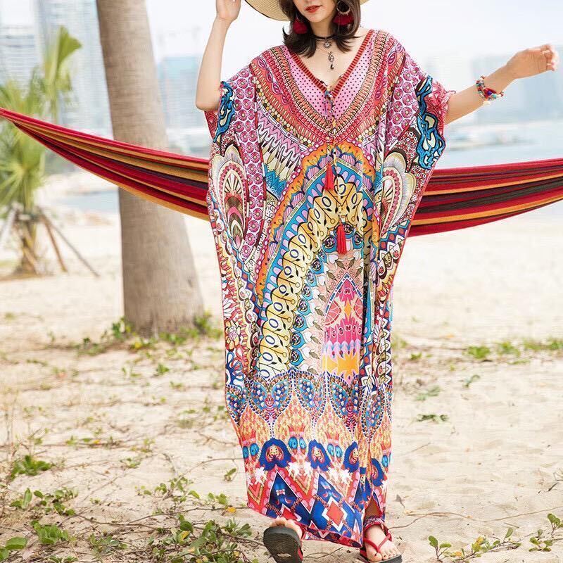 > ワンピース ボヘミアン ロング ワンピース マキシ丈 ワンピース サマー ワンピ 韓国 オルチャン マタニティー ドレス レッド 赤 フリー