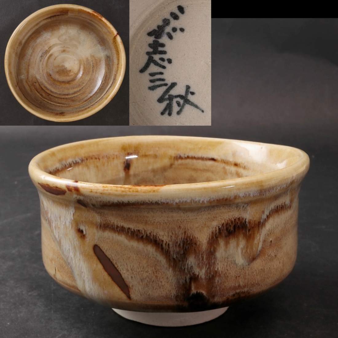 - ◆◇こぶ志焼 山岡三秋 蕎麦手茶碗 北海道 こぶ志窯 茶道具 共箱◇◆