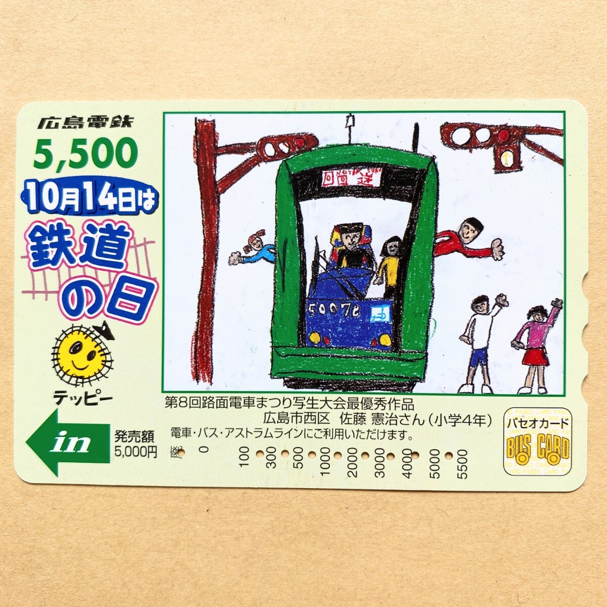 - 【使用済】 パセオカード 広島電鉄 10月14日は鉄道の日 第8回路面電車まつり 写生大会 最優秀作品