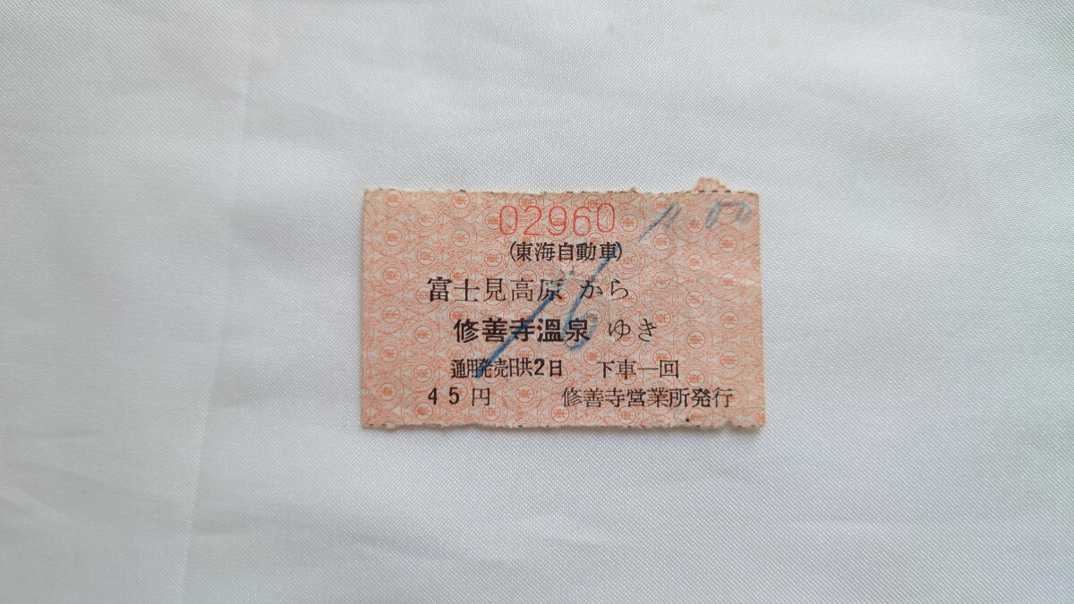 - ▼東海自動車(東海バス)▼富士見高原から修善寺温泉ゆき乗車券▼軟券