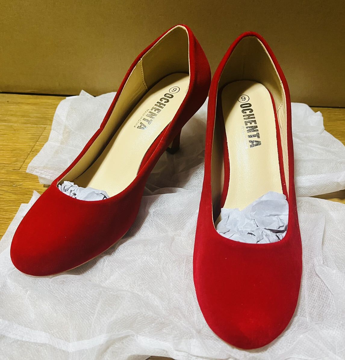 - OCHENTA パンプス ピンヒール 23cm レッド スエード 未使用