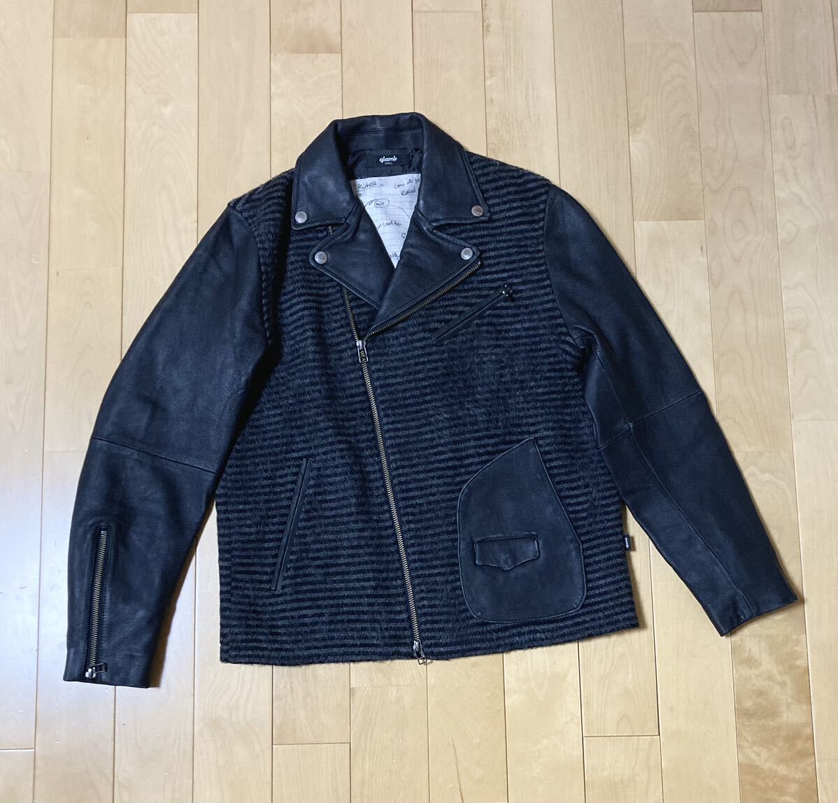 > 美品☆[GLAMB] 21AW 定価46,200 KINT MIX RIDERS ニット切替 USED加工 ラムレザージャケット ダブルライダース S 羊革 ブラック グレー