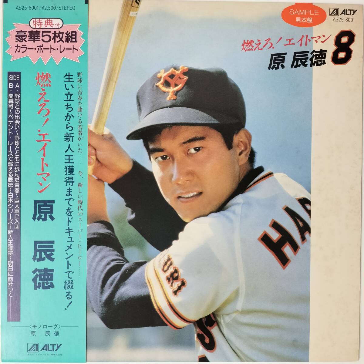 - 48939【プロモ盤★美盤】 原辰徳 / 燃えろ! エイトマン ※帯付き★ポートレート付